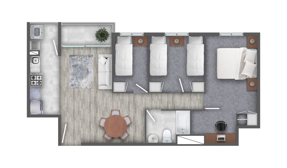 - Piso cerámico en todo el depto, excepto en dormitorios